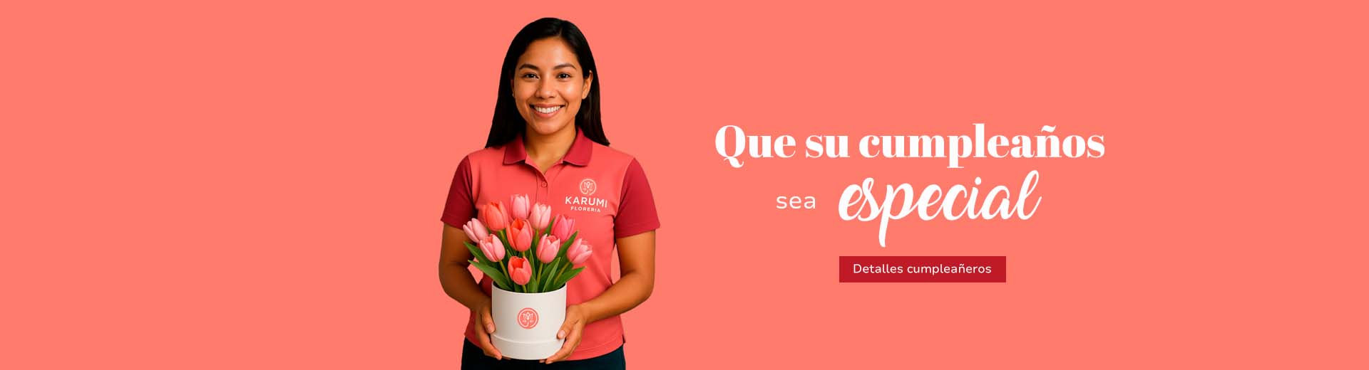 En Karumi Florería llevamos más de 9 años siendo cómplices de momentos especiales, con detalles únicos. Nuestra fundadora, Jacqueline, está constantemente innovando y buscando nuevas tendencias para brindarte los mejores arreglos florales personalizados, que permitan transimir aquello que deseas expresar.Somos una tienda online formal siempre lista para birndarte una excelente calidad de atención. Nuestros lindos detalles pueden ser entregados dentro de Lima y Callao. Cuenta con nostros para sorprender a tu persona favorita.